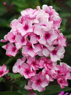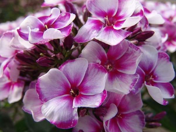 Флокс Neon Flair (Неон Флэр). Высота растения 80-100см, размер цветка. Белый, с яркими пурпурно-малиновыми мазками по краям лепестков и таким же центром. Соцветие небольшое, неопределенной формы, рыхлое. Куст прочный, многостебельный, быстро разрастается.
