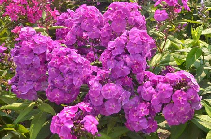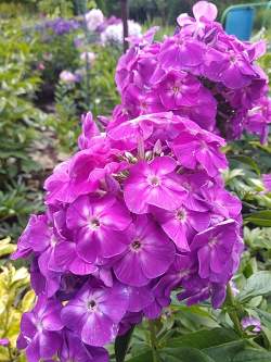 Флокс Пижон. Роскошный темно-лиловый сорт. В окраске присутствует пурпурный оттенок. В центре белое пятнышко. Диаметр цветка 3,8 см. Не выгорает. Лепестки плотные, волнистые. Соцветия овальные, вытянутые, плотные. Куст высотой 90 см, крепкий, компактный. Разрастается быстро. Эффектный и заметный! Цветет в средние сроки.