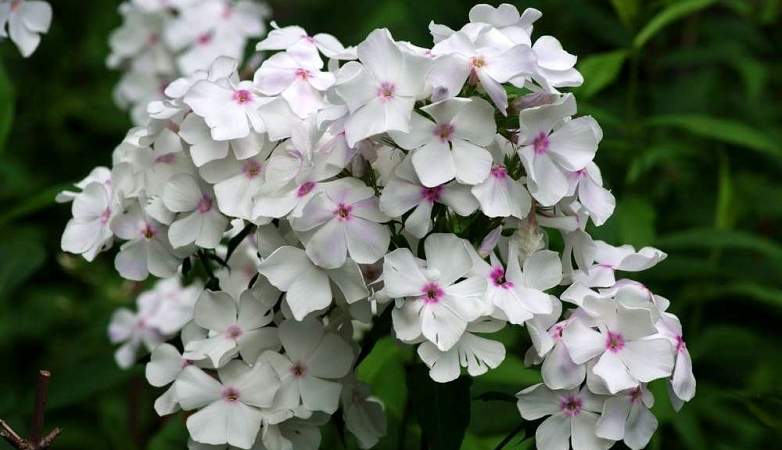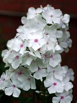 Флокс Принцесса Диана. Белый с маленьким сиреневым глазком-звездочкой. Цветок характерной формы — с выпуклым центром. лепестки плотные. Соцветие округло-коническое, большое и плотное. Куст стройный, прочный, красивый. Устойчивый, разрастается хорошо.