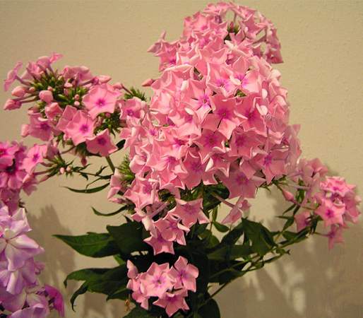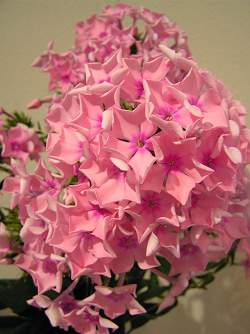 Флокс Романтика. Цветки 3,5 см. Высота 79 см. Срок цветения средний. Светло-розовый с малиновым глазком. Цветки характерной формы с загнутыми уголками. Соцветие округло-конической формы, очень плотное.