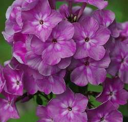 Флокс Селена. Множество оттенков цвета в зависимости от освещения и возраста цветка — это делает флокс Селена совершенно уникальным. Эффектные темно-розовые цветки с серебристой дымкой, в центре белая звездочка. Дымка особенно ярко выражена в прохладную погоду.