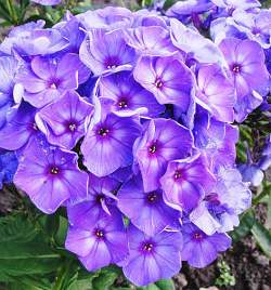 Флокс метельчатый Шербургские Зонтики. Цветок крупный, чашевидной формы, густо-сиреневый с более тёмным глазком и посветлением в центре, к вечеру синеет. Лепестки перекрываются. Соцветие округло-плоское. Стебли прочные. Высота 60 см. Срок цветения средний.
