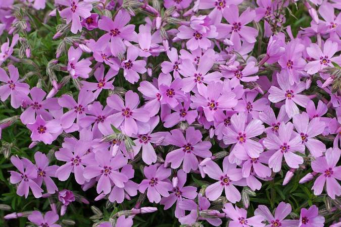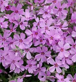 Флокс шиловидный Moerheimii (Моерхайма). Розовый с пурпурным глазком. Образует вечнозелёные ковры. Разрастается хорошо.