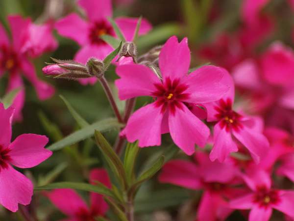 Хотя цветки у стелющихся флоксов мелкие, цветут они очень обильно. Под сплошным покровом цветов совершенно не видно зелени и длится это около месяца. При благоприятных условиях может наступить повторное цветение.