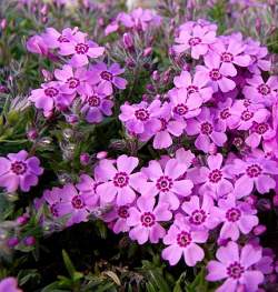 Хотя цветки у стелющихся флоксов мелкие, цветут они очень обильно. Под сплошным покровом цветов совершенно не видно зелени и длится это около месяца. При благоприятных условиях может наступить повторное цветение.
