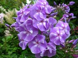 Флокс Штернхиммель. Светло-сиреневый с густыми тёмно-сиреневыми тенями и штриховкой. Колечко светло-лиловое в форме звезды. Цветок колесовидной формы. Соцветие крупное, ромбическое. Куст прочный. Зимостойкий, устойчивый к грибковым заболеваниям сорт.