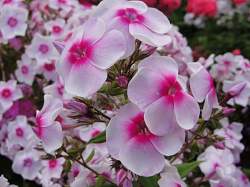 Флокс Снегирь. Сорт Оксаны Кудрявцевой (СПб). Цветки крупные: 4,0-4,2 см. По белому полю лепестков от центра к краям разливается красно-малиновая краска, яркая в центре и размытая к краю. Кусты 70 см, разрастаются медленно.