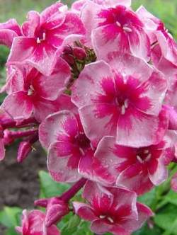 Флокс Stars and Stripes (Старс энд Страйпс) стал популярен благодаря запоминающемуся рисунку в виде звезды малинового цвета в центре цветка, от которой отходят прямые серебристые штрихи, края же лепестков имеют нежный розово-малиновый оттенок.