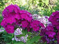 Флокс Тарас Шевченко. Насыщенно-пурпурный с небольшим ярким колечком, красивого запоминающегося оттенка с коричневатым тоном. Цветок до 4 см в диаметре. Не выгорает. Соцветие плотное, достаточно крупное. Куст стройный, гармоничной формы. Высота до 100 см. Устойчивый здоровый сорт. Нарастает медленно.