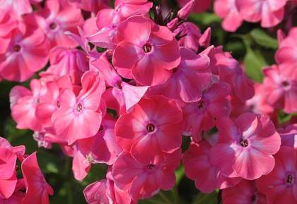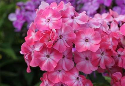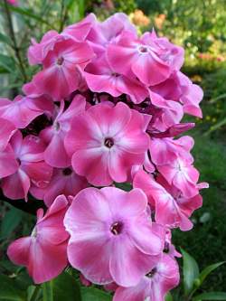 Флокс Вальс. Колесовидный лососёво-розовый цветок с белой звездой и тонким пурпурным колечком. Характерная особенность — ярко выраженная волнистость лепестков, с чем, очевидно, и связано название. Диаметр цветка 3,9-4,0 см.