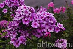 Описание с сайта Phlox.ru: Сиреневый, "сумрачный", с усилением тона к центру цветка и расплывающимся пурпурным глазком. Соцветие 20 х 20 см. Мощный сильный куст. Назначение универсальное.