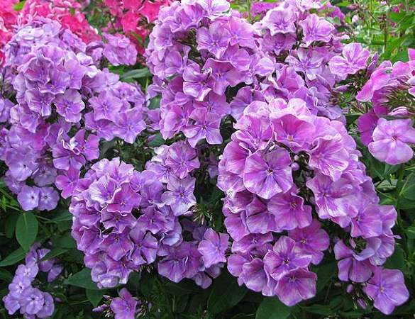 Флокс Ветер Северный. 4.0-4.2; 70-75. Цветок колесовидной формы, пурпурно-сиреневый, волнистые лепестки "тенями" украшает серебристая дымка. Вечером и в пасмурную погоду меняет цвет и приобретает сине-голубые оттенки, в центре яркая синяя звёздочка. Не выгорает. Соцветие большое, округло-коническое, очень плотное, красиво сложенное. Куст прочный, мощный, быстро разрастается, устойчивый к заболеваниям. Цветение обильное и продолжительное. Назначение универсальное.