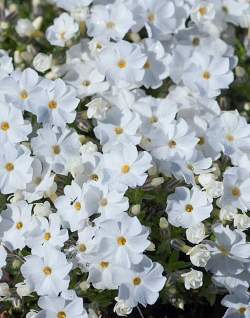 Хотя цветки у стелющихся флоксов мелкие, цветут они очень обильно. Под сплошным покровом цветов совершенно не видно зелени и длится это около месяца. При благоприятных условиях может наступить повторное цветение.