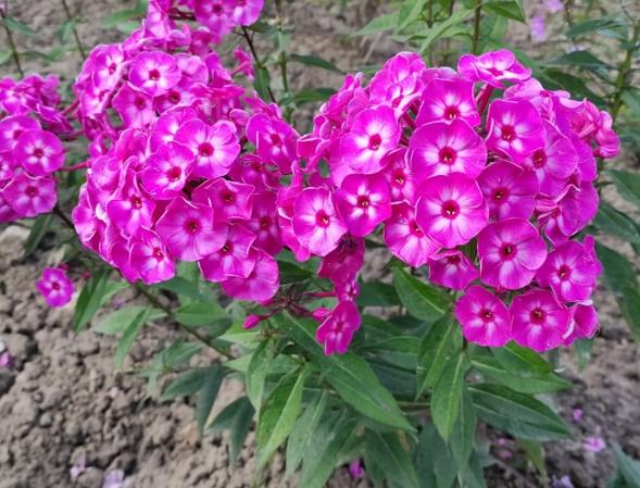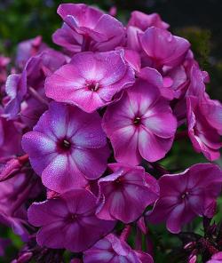 Флокс Яркое Лето. Цветки красочные, как вспышки салюта - малиново-пурпурно-сиреневые с ярким лучистым центром и карминовым глазком. Лепестки волнистые, перекрываются. Соцветия плоско-округлые, плотные. Стебли крепкие, темные. Неприхотливый сорт с отменным здоровьем. Высота 85-95 см, диаметр 3,6 см, средне-поздний.