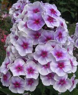 Флокс Ярославна. Светло-лилово-голубой с пурпурным глазком. Лепестки с волнистыми краями. Цветок колесовидный. Соцветие плотное, крупное. Высокая зимостойкость и устойчивость к заболеваниям.