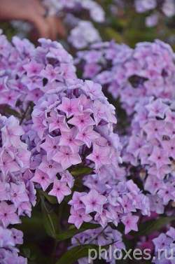Флокс Яуза. Диаметр цветка 2,7 см. Высота 80 см. Срок цветения средний. Розово-сиреневый с пурпурными не очень яркими лучиками в центре. Цветок характерной пятиугольной формы за счет подвернутых внутрь краев лепестков. Бутоны сиреневые. Соцветия очень крупные, вытянутые, эффектные. Куст крепкий, прямостоячий.