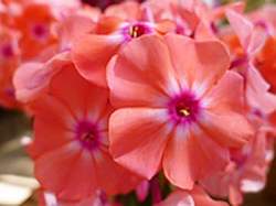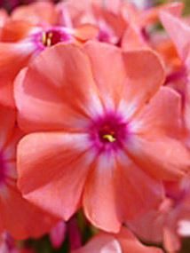 Флокс Золотая Русь. Цветки крупные, колесовидной формы, прекрасного розовато-оранжевого цвета с посветлением в центре и ярким пурпурным колечком. Соцветие плотное, овальное. Цветки очень крупные: 4,5 см. Высота 70 см. Срок цветения средний. Очень красивый!