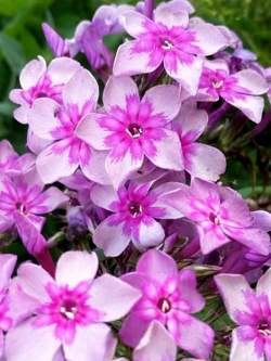 Флокс Звездочет. Венчик нежно-сиренево-лиловый с неравномерными пастельными тенями по полю лепестков. Вечером заметно усиливается присутствие голубого цвета. Форма цветка — звездчатая. Соцветие округло-коническое, достаточно плотное.