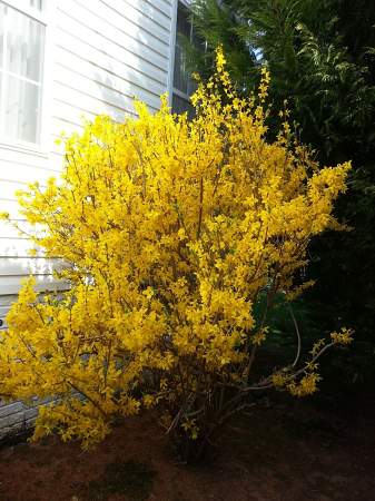 Форзиция Minigold (Миниголд). Небольшой листопадный кустарник с компактной кроной. В период, когда все деревья и кусты стоят "голые", форзиция — начинает радовать Вас своим "золотым", обильным цветением.