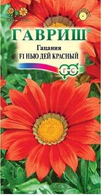 Гацания Нью Дей Красный F1 5 шт. Растение высотой 20-25 см, диаметр куста 15-20 см. Цветоносы прочные. Ярко красные язычковые цветки (лепестки) изящных соцветий, диаметром 7-10 см, отогнуты и открывают серединку, окаймляя ее темной полосой. Засухоустойчивая. Используют на клумбах, в бордюрах, рабатках.
