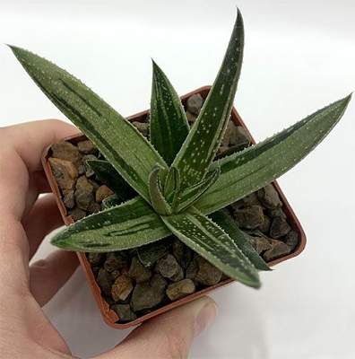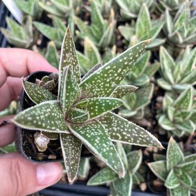 Гастерия Kaleidoscope (Калейдоскоп). Очень популярна в Европе, но у нас в стране ее почти не продают. Можно сказать, редкость. Листья расположены не веером, а собраны в розетку. Листья толстые, мясистые, заостренные. Имеют красивый рисунок — основа мраморная, плюс зеленые полосы. В уходе очень проста, нужны только хорошо освещенное место (можно на полном солнце) и редкий полив.