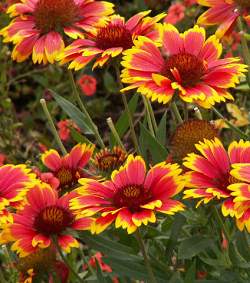 Гайлардия Bright Color (Брайт Колор). Куст компактный высотой 35-40 см, цветки диаметром до 9 см, двухцветные, красные с золотистыми кончиками. Светолюбивое растение. Предпочитает легкие, сухие почвы. Используется в группах, рабатках, миксбордерах, для срезки.