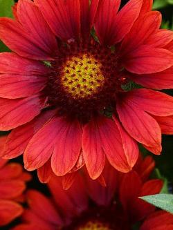 Гайлардия Meza Red (Меза Ред). В серию "Меза" входят сорта с ранним и обильным цветением. Цветки крупные, бывают полумахровые. Сорт Meza Red темно-красный, к центру цвет переходит в бордовый. Ярко-желтая корзинка в центре контрастно выделяется.