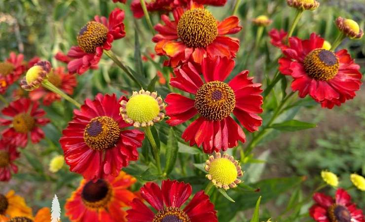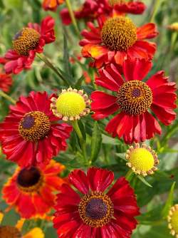 Гелениум Hot Lava (Хот Лава). Открытый красный цвет, почти алый, не так часто встречается у гелениумов. В основном это сложные оттенки. Сорт Хот Лава не вырастает выше 80 см, в диаметре куст достигает 50-60 см. Побеги мощные, разветвленные, хорошо облиственные. Цветет с июля по сентябрь. Цветки крупные, ярко-красные, с желтыми всполохами.