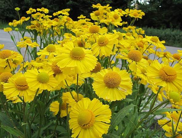 Гелениум Kanaria (Канария). Высота до 120 см. Цветки крупные, яркие, лимонно-желтые с коричневым налетом и желтым центром. Диаметр цветка 4-5 см. Нежный, тонкий медовый аромат Период цветения июнь-сентябрь.