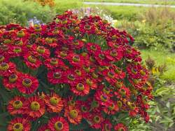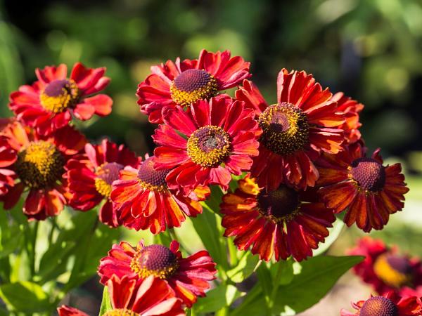 Гелениум Ruby Charm (Руби Чарм). Сорт компактный, всего 60 см в высоту. Размер дает возможность сочетать этот гелениум со множеством позднелетних растений, а в особенности с декоративными травами.
