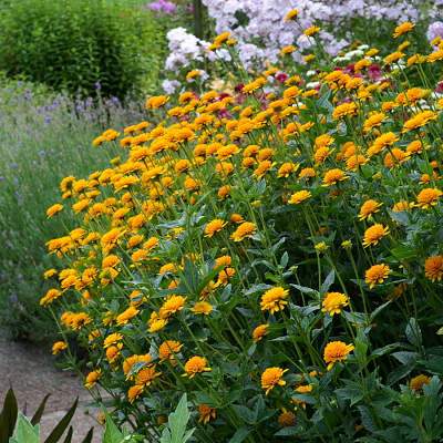 Лучшими соседями для этого солнечного и яркого растения станут всевозможные многолетние культуры голубых или фиолетовых оттенков. Замечательное сочетание гелиопсисы дадут с колокольчиками, астрами, васильками.