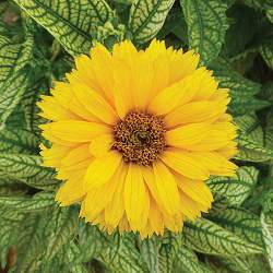 Гелиопсис махровый Double Sunstruck (Дабл Санстрак). Многолетник с золотисто-желтыми махровыми шаровидными цветками и вариегатными листьями. Гелиопсис неприхотлив, любит солнце и свежую дренированную глинистую почву.