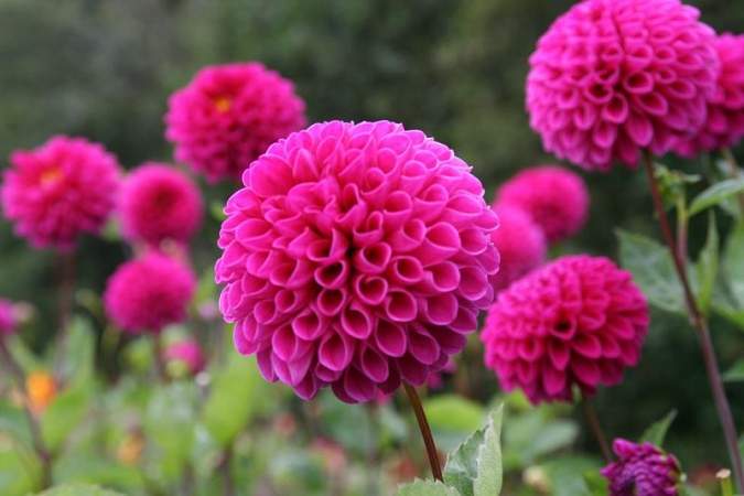 Георгин Addison June (Эддисон Джун). Группа шаровидных. Цветки некрупные, 8-10 см, но какой цвет! Пурпурный, сгущающийся к центру в фиолетовый. Высота куста 90 см.