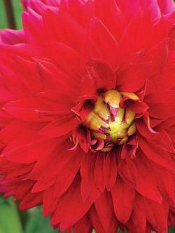 Георгин All Directions (Олл Дайрекшнз). Очень крупный, серединка плотная, кремово-салатовая, лепестки яркие, красно-бордовые.