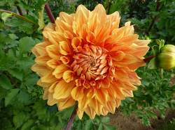 Георгин Ben Huston (Бен Хьюстон). Очень крупный бронзово-оранжевый с розовым, один из самых обильноцветущих сортов, хорошо стоит в срезке, диаметр цветка 22 см.