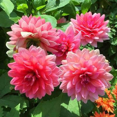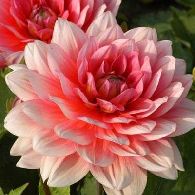 Георгин Berliner Kleene (Берлинер Клин). Невысокий сорт с прекрасными крупными цветками, напоминающими по форме лотос. Ближе к центру лепестки ярко-розовые, к кончикам светлеют до очень светло-розового. Диаметр цветка в роспуске 15 см. Высота растения 50 см.