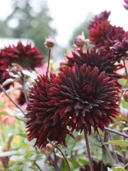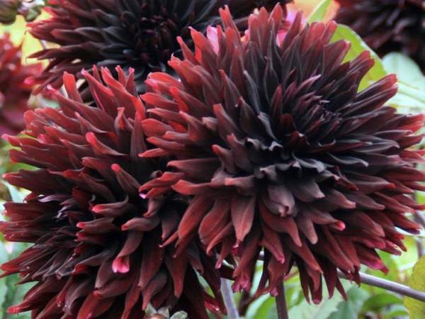 Георгин Black Jack (Блэк Джек). Очень крупный цветок, насыщенно-бордового цвета с пости черным центром, диаметр 20 см. Листва бронзово-зеленая.