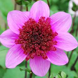 Георгин Blue Bayou (Блу Байо). Сложно представить себе, что этот цветок, который внешне больше похож на нарцисс, на самом деле один из многочисленных сортов анемоновидных георгинов. Особенно выигрышно они смотрятся в сочетании с весенними луковичными, поскольку со временем именно они будут маскировать пожухлую зелень отцветших растений.