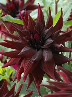 Георгин Brigitta Alida (Бригитта Алида). Роскошный георгин из группы Декоративных. Цвет густо-бордовый, в центре соцветие еще темней. Диаметр 20 см. Соцветие с отогнутыми слегка волнистыми лепестками. Для лучшего цветения и получения более крупных цветков необходимо провести удаление боковых бутонов. Трехлетние клубни требуют омоложения способом деления или черенкования.