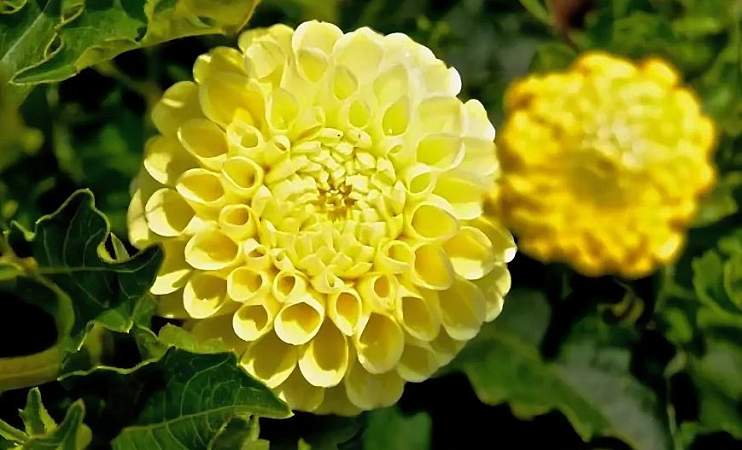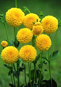 Георгин Deepest Yellow (Дипист Еллоу). Группа помпонных. Цветок довольно крупный, около 10 см в диаметре.