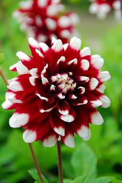 Георгин Duet (Дуэт). Темно-вишневый с белыми кончиками, диаметр цветка 16 см.