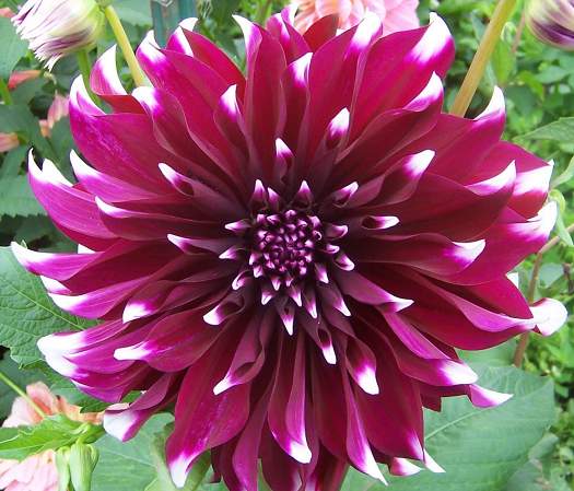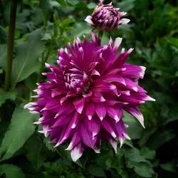 Георгин England's Glory (Ингландз Глори). Очень крупный, лепестки свернуты и напоминают иголки, сиренево-лиловый, кончики лепестков белые, диаметр цветка 20 см.