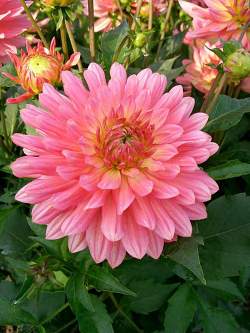 Георгин Extase (Экстаз). Роскошный георгин из группы Декоративных. Цвет близкий к оранжевому. Диаметр соцветия 15 см. Соцветие прекрасной формы, "лепестки" сложены черепитчато, поэтому соцветие в целом похоже на огромную камелию. Замечательное украшение коттеджного сада!