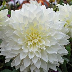 Георгин Fleurel (Флёрел) отличается огромными шикарными белоснежными цветками. Великолепные цветы георгины этого сорта отлично сочетаются практически с любыми растениями вашего сада.