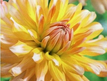 Георгин Floyd's (Флойдз). Имеет желтый цветок, диаметром 13 см, кончики лепестков белые. Высота взрослого растения 50 см.