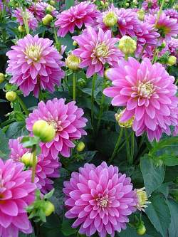 Георгин Gallery Rembrandt (Геллери Рембрандт). Бордюрный сорт высотой около 45 см. Цветки розовато-сиреневые, до 15 см в диаметре. Невероятно обильно цветет! Серия "Гэллери" (Gallery) объединяет сорта георгинов нового поколения, предназначенные для оформления переднего края бордюра и выращивания в контейнерах.