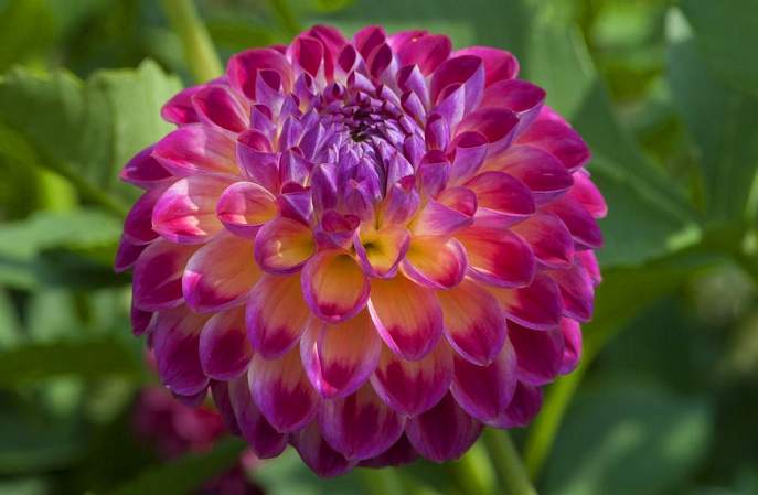 Георгин Hapet Daydream (Хэпет Дейдрим). Группа шаровидных. Диаметр цветка 13 см.