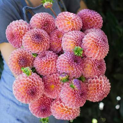 Георгин Jowey Winnie (Джовей Винни). Прелесть! Цвет теплый, глубокий, к центру розовый модулирует в густо-сиреневый. Диаметр 10 см. Высота 110 см. Отличная срезка.
