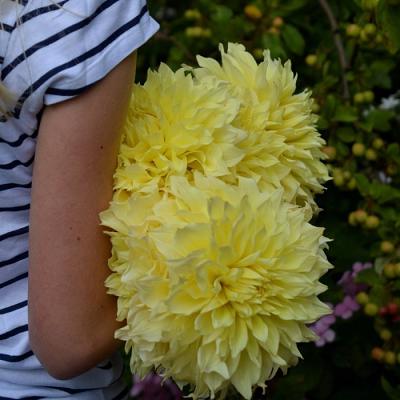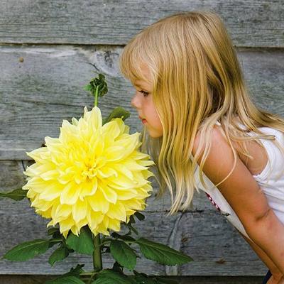 Георгин Kelvin Floodlight (Келвин Фладлайт). Рекордсмен по размеру цветка, он у этого сорта достигает 30 см в диаметре. Окраска ярко-желтая, светящаяся, не случайно сорт имеет в названии слово "floodlight", что в переводе с английского означает "прожектор". В 2005 году Американское Общество Любителей Георгинов (American Dahlia Society) присудило этому сорту столько наград, сколько не давало никакому другому сорту. Это вообще один из самых популярных сортов в Европе и США.