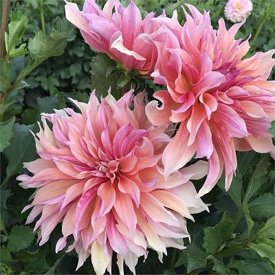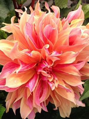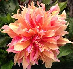Георгин Labyrinth (Лабиринт). Хочется крикнуть селекционерам "Браво!" Сочетание бежевого, розового, терракотового и оранжевого. Изысканная форма. Цветок пышный, но какой элегантный! Лепестки слегка скручены и отгибаются к стеблю. Размер цветка 18 см. Высота куста 90 см. Даже у людей, равнодушных к георгинам, этот сорт явно вызовет прилив любопытства. Цветок можно рассматривать долго, он меняет окраску и красив на всех стадиях.